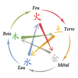 On observe des relations entre ces 5 éléments, d’engendrement et de contrôle.